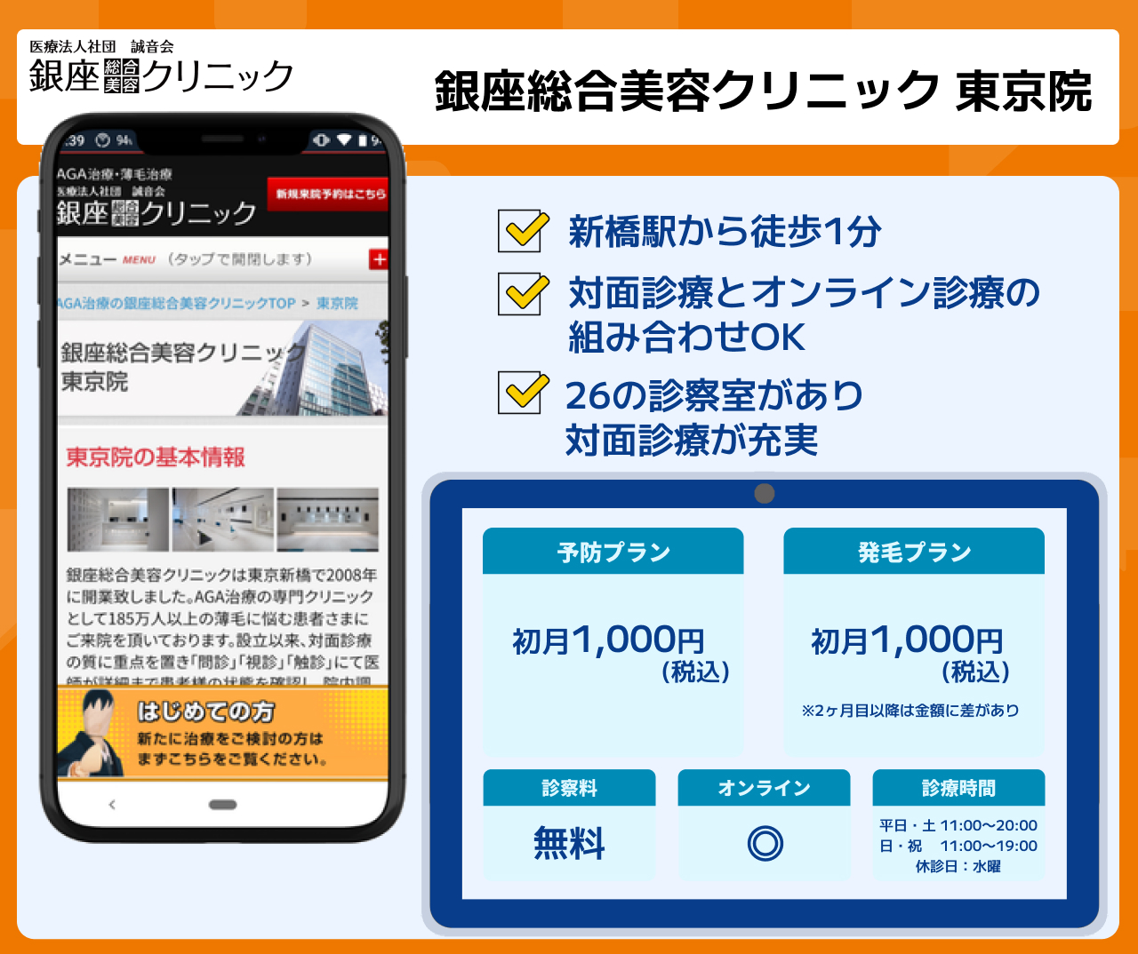 | 新橋院 | 〒105-0004 東京都港区新橋1-15-7 新橋NFビル B1F | 平日 10:00~20:00 土日祝 10:00~18:00 休診日:なし |