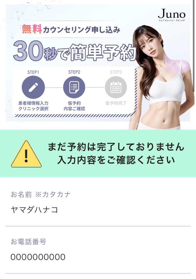 - ジュノビューティークリニックの予約は何を使いましたか?