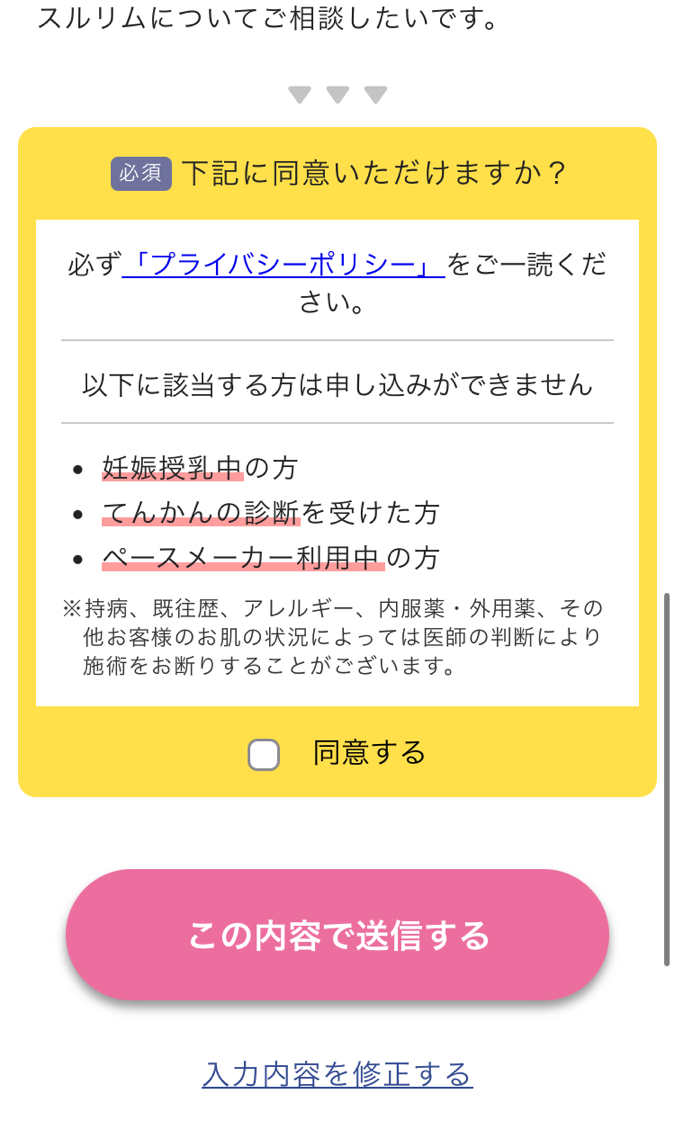 また、30分以上の遅刻で自動キャンセルになり1回分の施術回数が消化されてしまうので、気を付けてください。