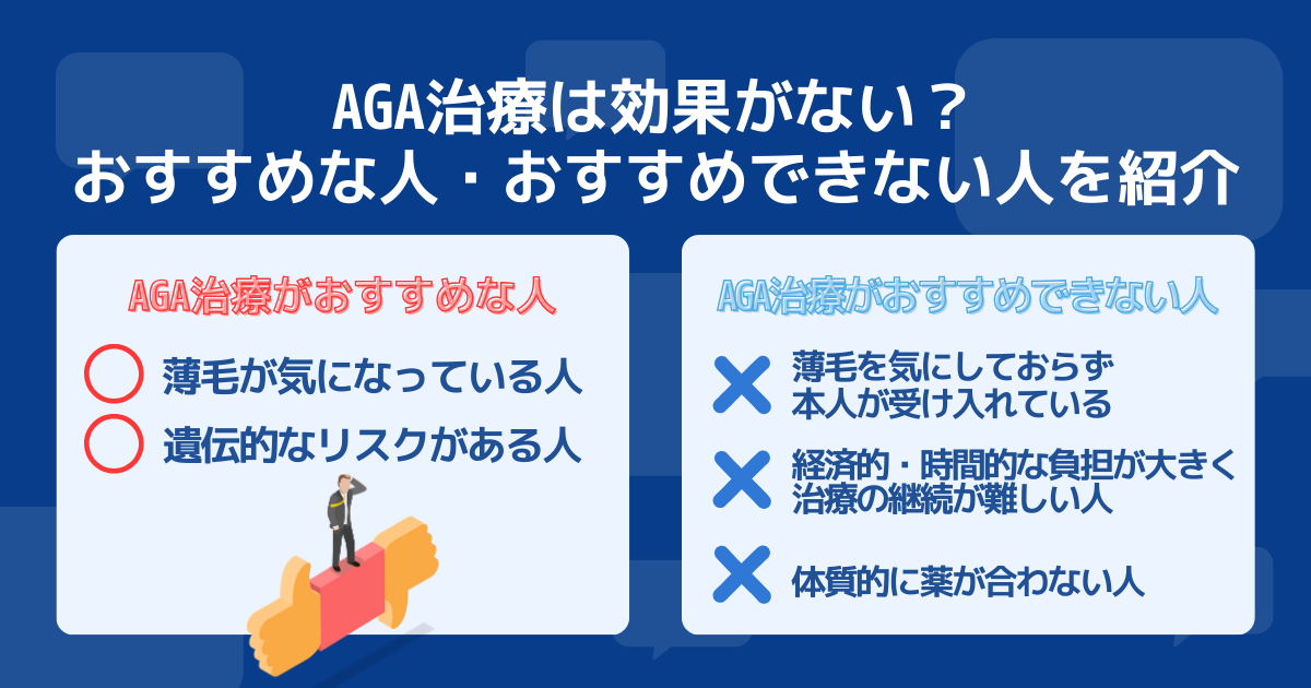 AGA治療は効果がない?おすすめな人・おすすめできない人を紹介