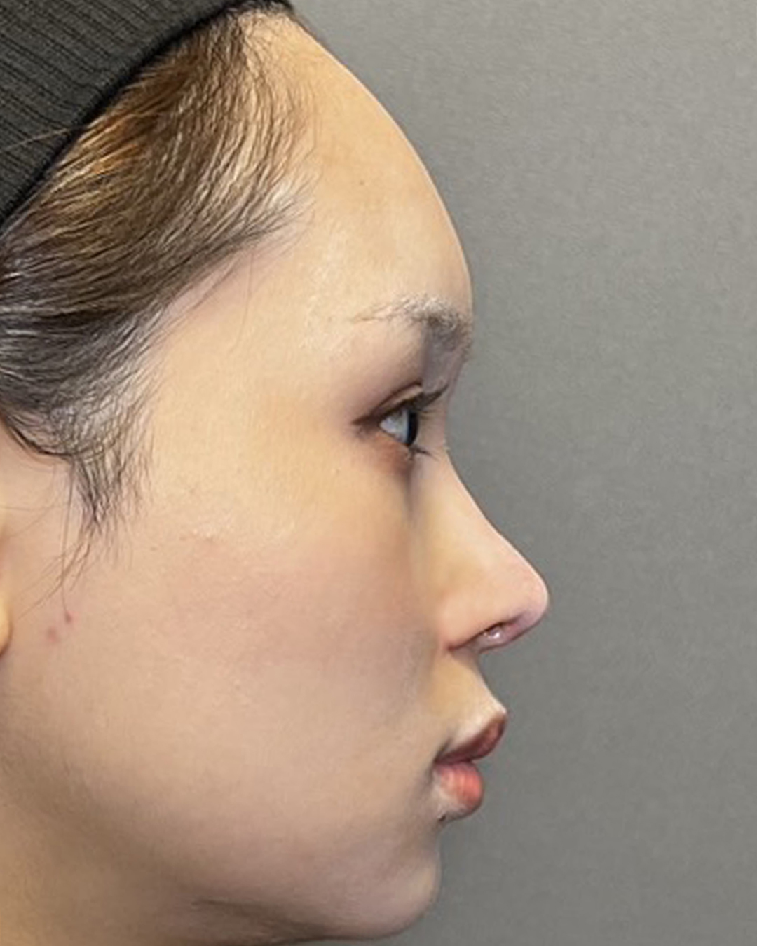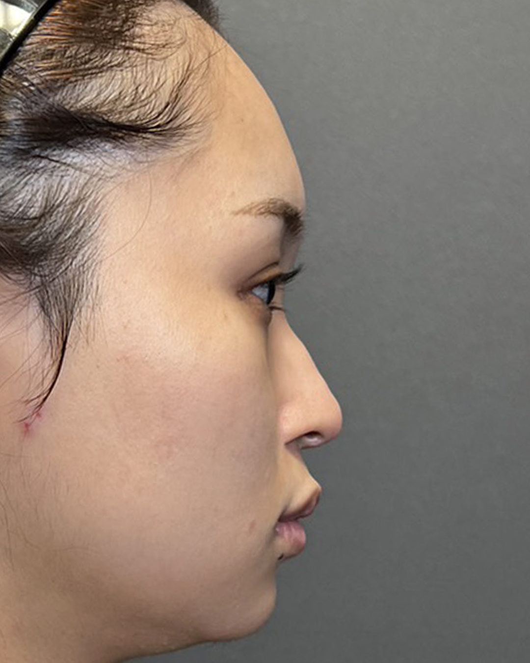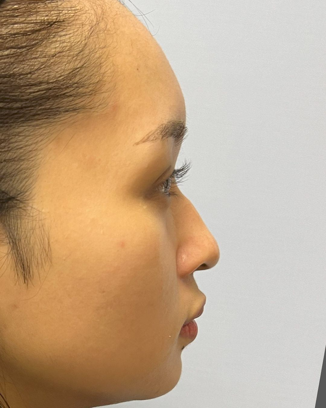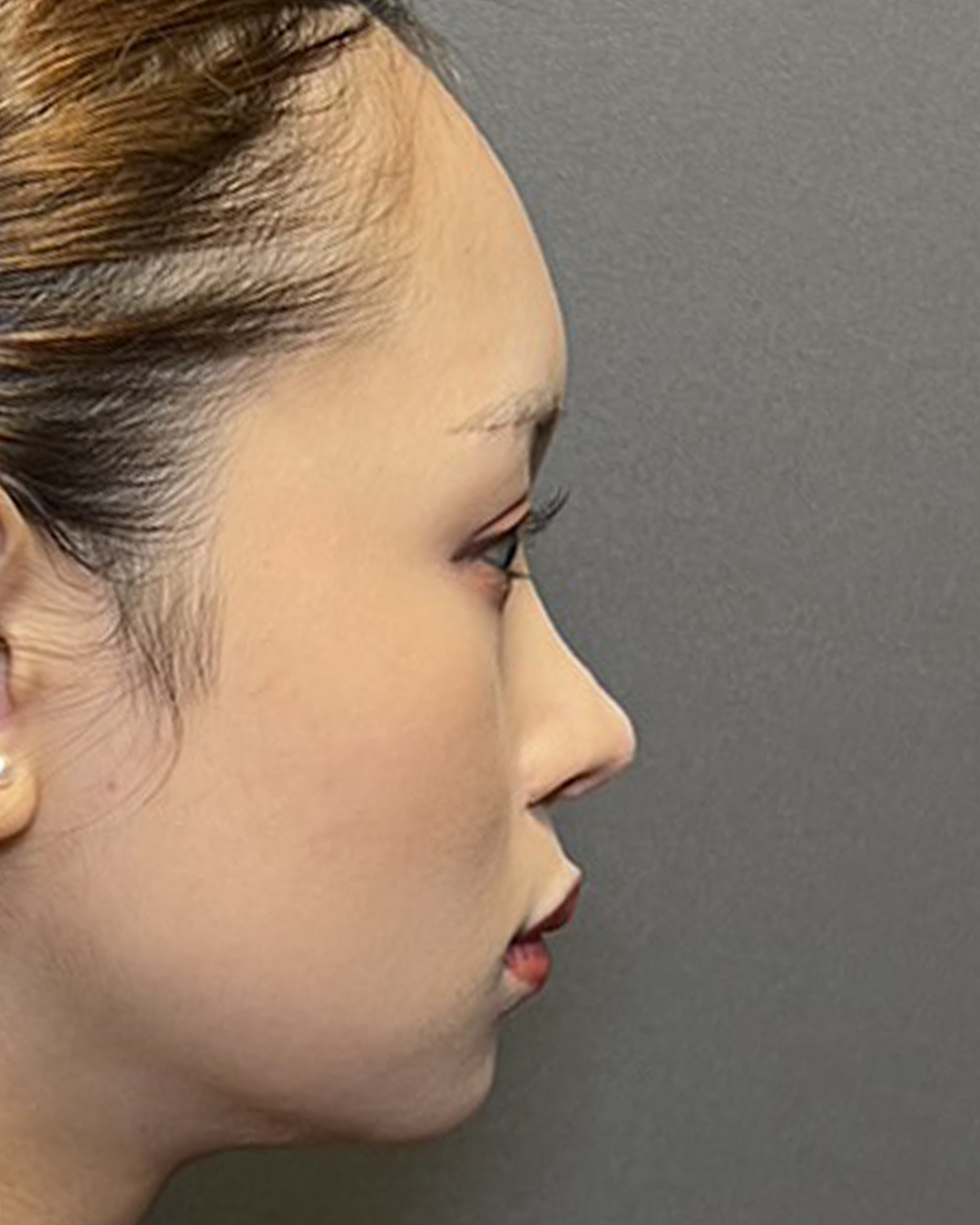 ヒアルロン酸注入による隆鼻術は鼻根部を手軽に高くすることができます。吸収される物質のため、繰り返し注入が必要ですが、生体にとって安全な物質ですので異物に抵抗感がある方にも安心して施術していただけます。質感はヒアルロン酸によりやや柔らかいものから硬いものまで種類により異なります。