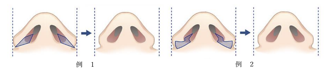 ②外側切開(外側法) 余分な小鼻の皮膚を取り除く方法です。